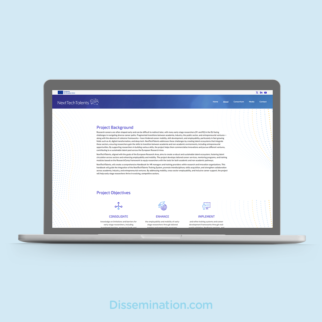 For the HORIZON project NextTechTalents, funded by the European Union, a full project identity was created as shown in the examples above.